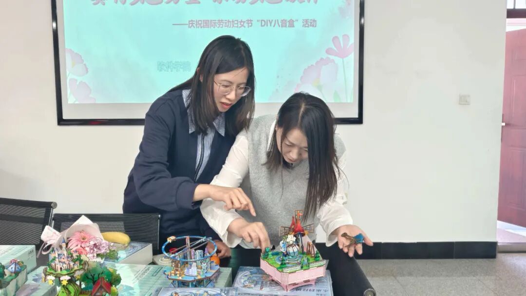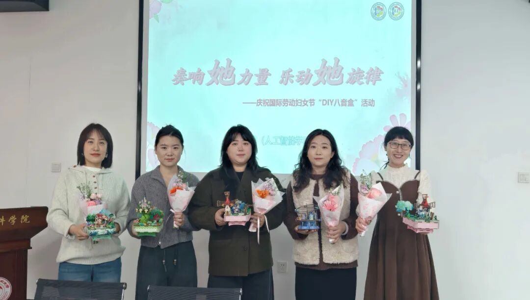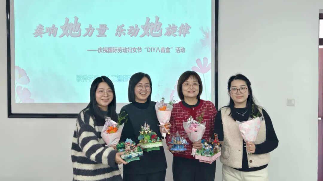 三月春风暖,巾帼绽芳华。3月6日,软件学院(人工智能学院)在耘慧楼403会议室开展“奏响她力量 乐动她旋律——庆祝国际劳动妇女节“DIY八音盒”主题活动,党委书记杨本臣、院长沈学利、党委副书记白雪、副院长、工会主席姜彦吉与全体女职工欢聚一堂,共庆佳节、共话美好。