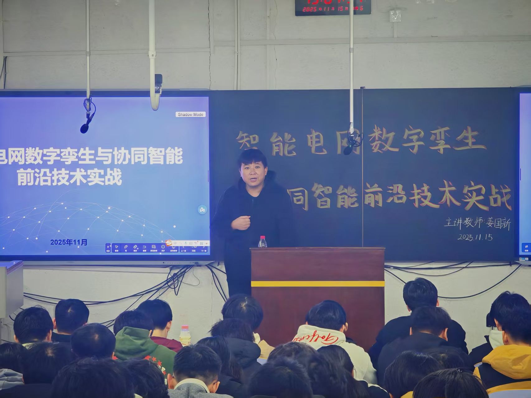 在理论教学环节,姜国新老师系统梳理了数字孪生与协同智能的核心概念、技术架构及其在智能电网中的典型应用,让同学们对这两大前沿技术的融合形成纲领性认识。同时,讲座更突出“实战”特色,姜老师引导同学们动手构建简化的电网设备数字孪生体并尝试集成协同智能算法,通过“理论+代码+仿真”一体化教学,将抽象知识转化为解决实际工程问题的能力,让同学们深刻体会技术在提升电网智能化方面的巨大潜力。