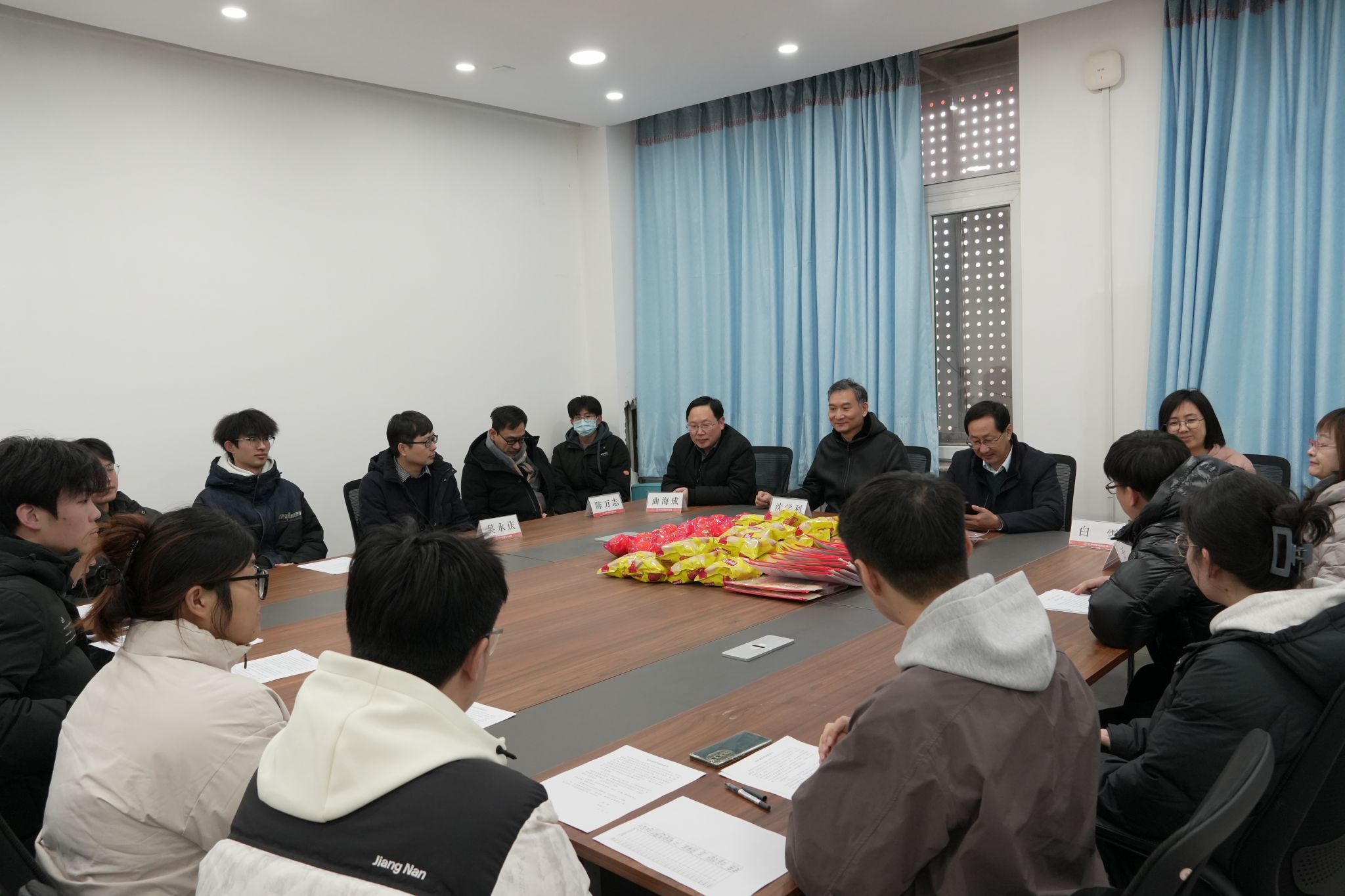 杨本臣书记、沈学利院长首先代表学院向全体考研学子表达了深切关怀与真诚祝福,对同学们长期以来的坚持与付出给予充分肯定。各位领导细致询问大家的复习进展、报考方向,并贴心了解同学们在生活、作息、饮食等方面的具体情况与实际需求,就同学们提出的问题细致解答,鼓励同学们“坚定信心、从容应对,学院全力为大家保驾护航”。座谈最后,各位领导老师为2026届考研学生发放了精心准备的考研备品并为学生代表们送上了橙子以及乐事薯片祝福考研学子们心想事“橙”,心享“乐事”,考研必胜,一战成硕!