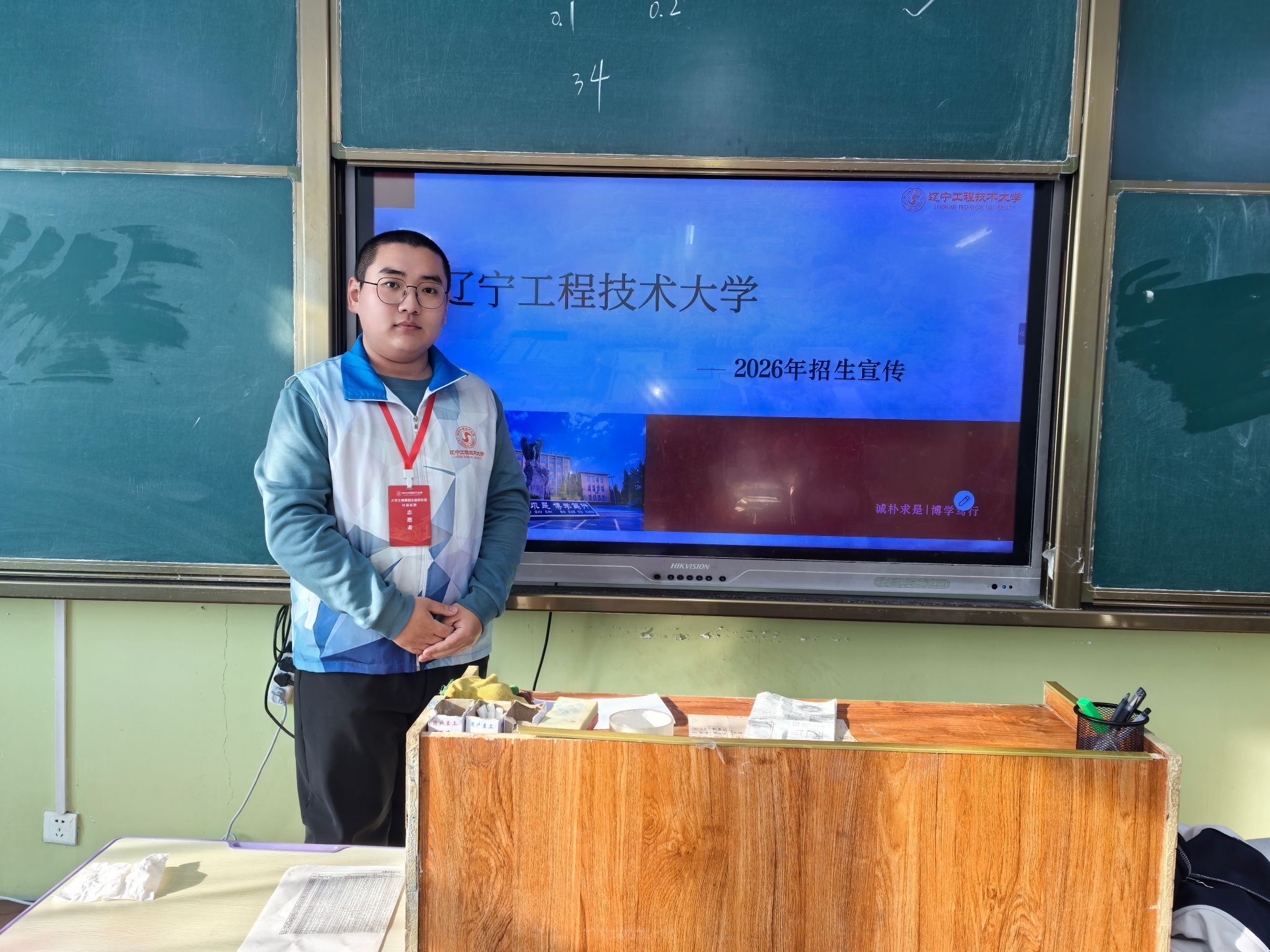 软件25-14班于文浠同学在2026年寒假期间,回到母校鞍山市鞍钢高级中学开展寒假招生宣传专项实践活动。本次活动以“宣讲辽工程特色,分享成长经验”为主题,通过PPT展示、互动交流等形式,向高中师生全方位介绍辽宁工程技术大学的办学优势与软件学院的培养模式,吸引更多优秀学子报考辽宁工程技术大学。